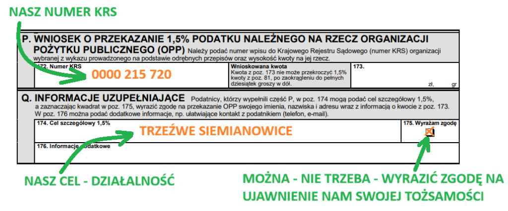 Z radością informujemy, że na realizację celów statutowych naszego Stowarzyszenia można już przekazywać darowiznę w postaci 1,5% swojego podatku!