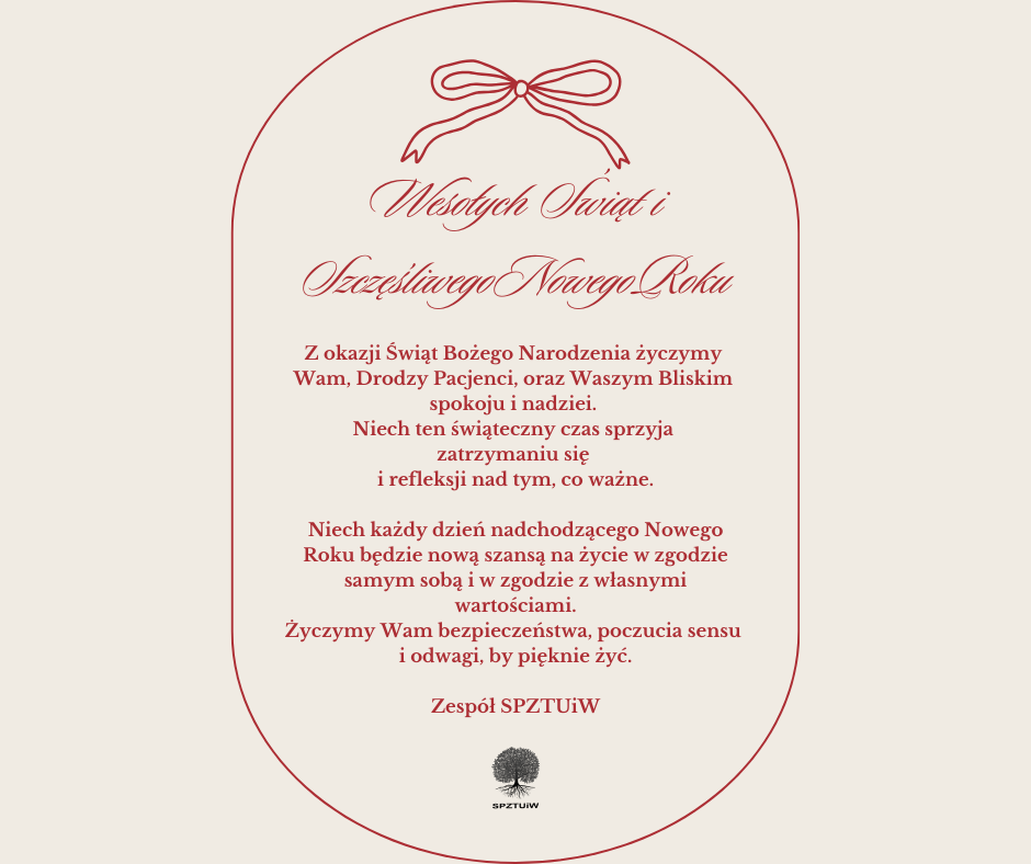 24gru Życzenia Świąteczne i Noworoczne Tagi: nowy rok, psychoterapia, SPZTUiW, święta, życzenia Kategorie: Aktualności